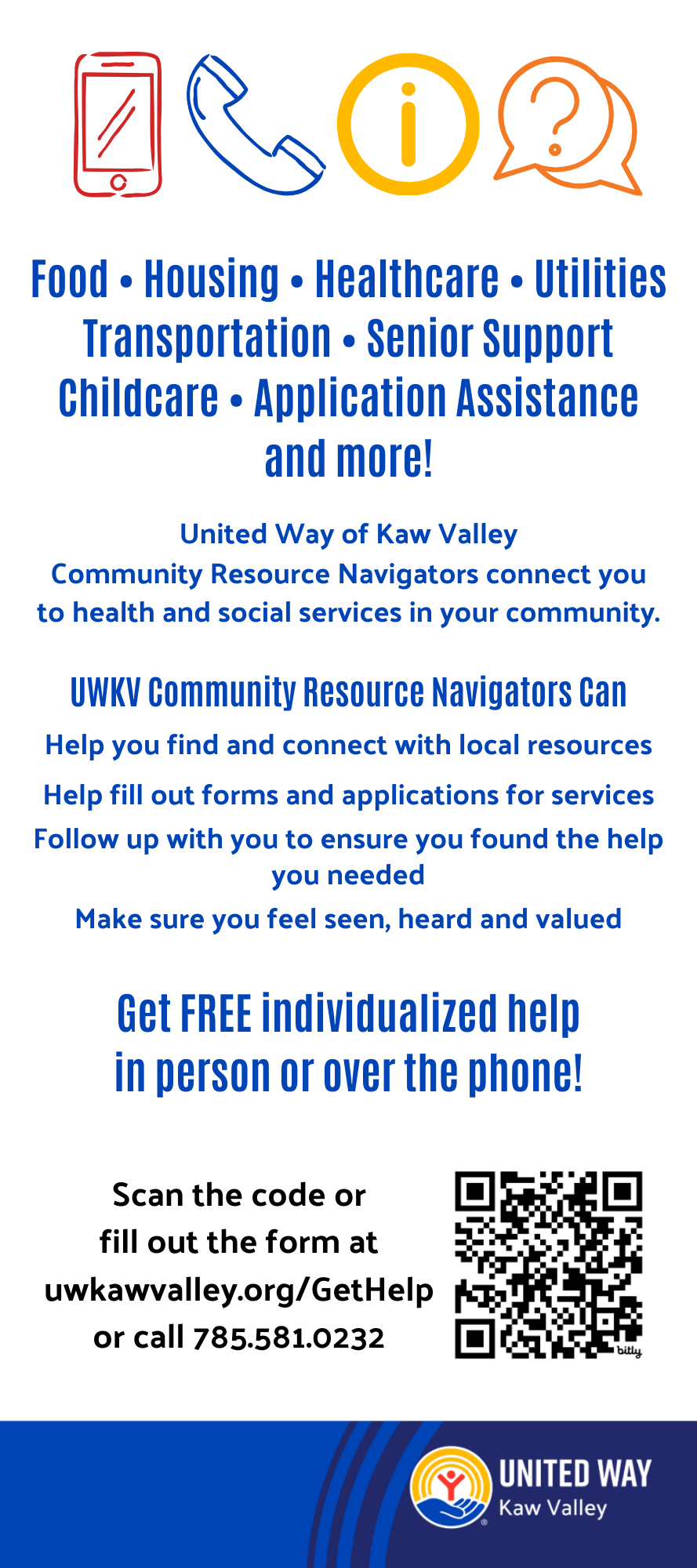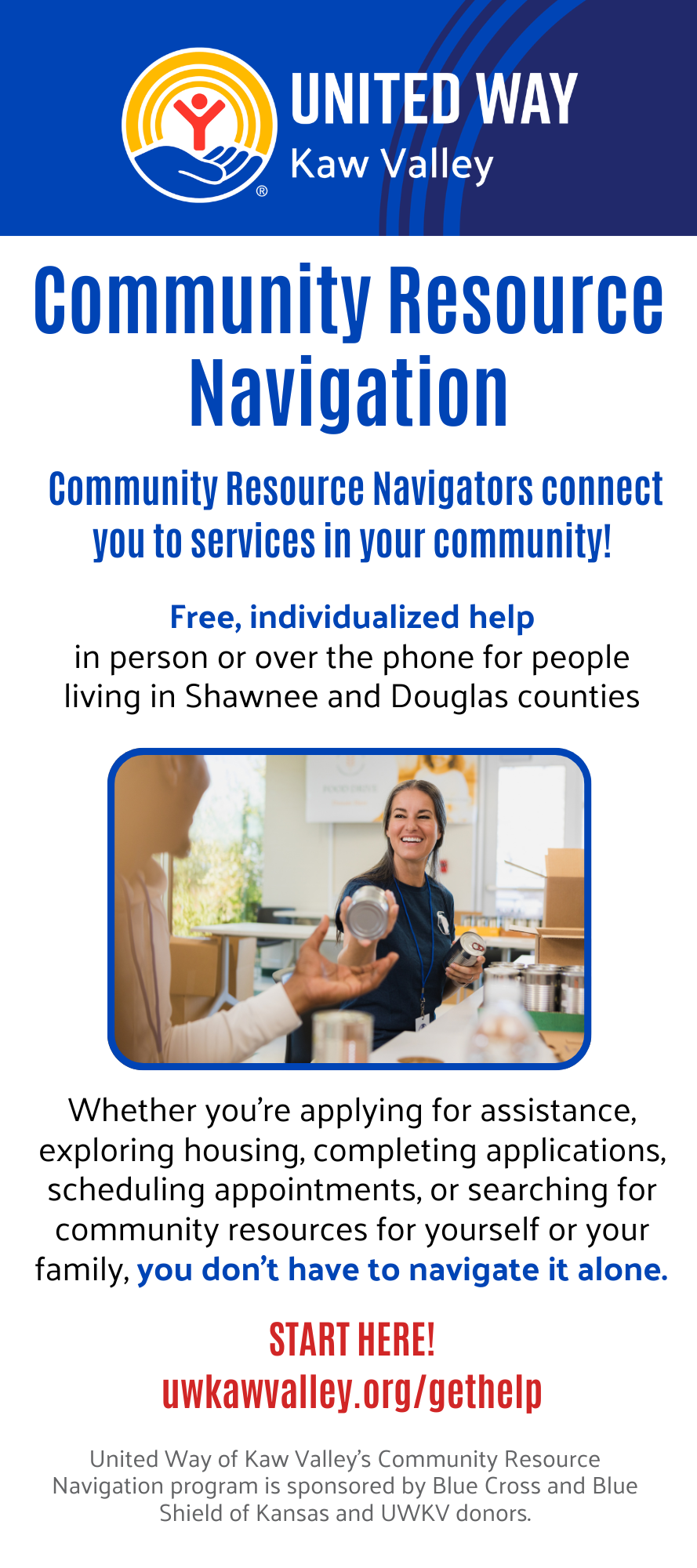 United Way of Kaw Valley’s Community Resource Navigation program is sponsored by Blue Cross and Blue Shield of Kansas and UWKV donors.